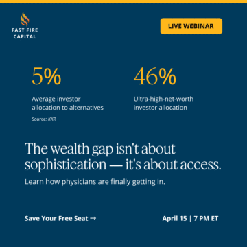 The short version: KKR data shows the average investor holds 95% of their wealth in stocks, bonds, and cash. Ultra-wealthy families hold 46% in alternatives. Physicians earn in the top 2% but invest like everybody else.