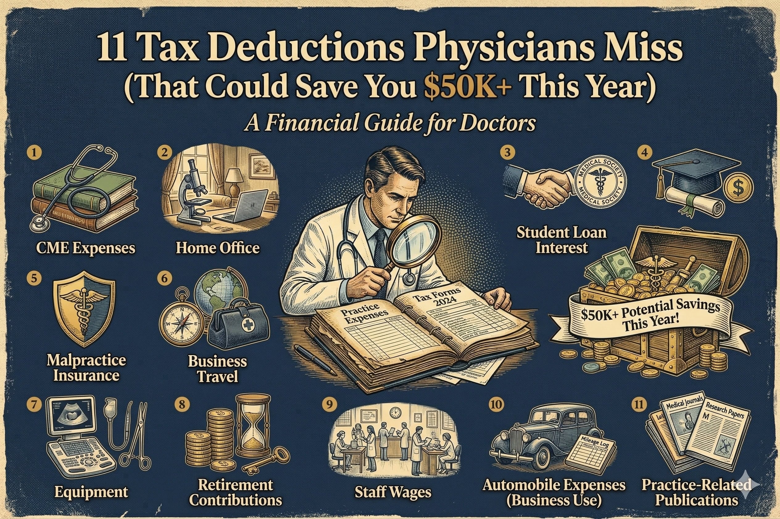Here’s the reality: claiming these deductions without documentation is how physicians end up in audits. But properly documenting legitimate deductions? That’s how you can legally reduce your tax bill by $50K+.